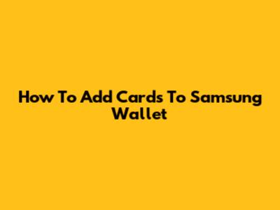 How To Add Cards To Samsung Wallet