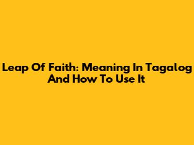 Leap Of Faith: Meaning In Tagalog And How To Use It