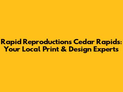 Hey guys! Ever find yourself in a bind, needing some high-quality prints or design work done super fast? If you're in Cedar Rapids, Iowa, then Rapid Reproductions might just be your new best friend. Let’s dive into what makes them a go-to spot for all things printing and design.