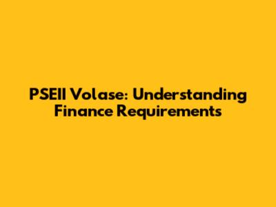 PSEII Volase: Understanding Finance Requirements