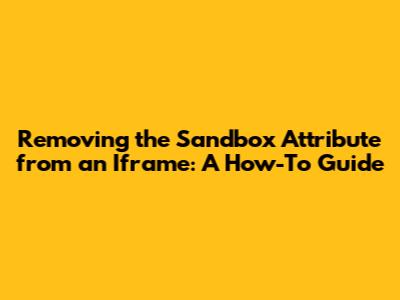 sandboxattribute: Use theremoveAttribute()method to remove thesandboxattribute from the iframe element. Here's an example:// Get the iframe element const iframe = document.getElementById('myIframe'); // Remove the sandbox attribute iframe.removeAttribute('sandbox');In this example,