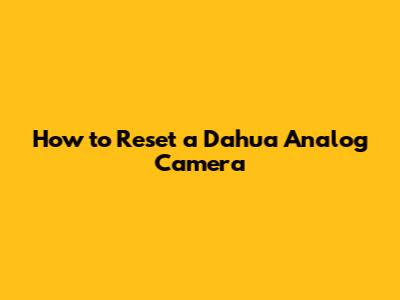 Why Reset Your Dahua Analog Camera?