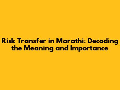 The Importance of Risk Transfer in Marathi Context