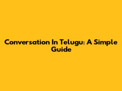 Conversation In Telugu: A Simple Guide