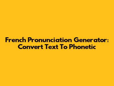 French Pronunciation Generator: Convert Text To Phonetic
