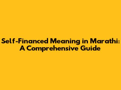 Hey guys! Let's dive into the world of self-financing, and particularly, what it means in Marathi. Understanding financial terms can sometimes feel like navigating a maze, right? But don't worry, we'll break down the meaning of self-financing, explore its nuances, and even throw in some real-world examples to help you wrap your head around it. So, what exactly does self-financed mean? In simple terms, it refers to the act of funding something – a project, a business, an education, or even a personal goal – using your own resources, rather than relying on external sources like loans, investors, or grants. Instead of borrowing money from a bank or seeking funding from outside parties, you're using your own savings, income, or assets to get the job done. This approach gives you complete control over your finances and allows you to avoid the burden of debt and interest payments. The concept is super relevant across various contexts, from starting a small business to financing your education or investing in a property. Think of it this way: if you decide to open a small cafe and use your personal savings to cover the initial costs like rent, equipment, and inventory, you're self-financing your venture. Similarly, if you're saving up to purchase a car without taking a loan, you're essentially self-financing that purchase. Self-financing can be a powerful strategy that allows individuals and businesses to maintain financial independence and avoid the complexities and obligations associated with external funding. It also forces you to be more disciplined in your spending habits, encouraging you to prioritize and budget effectively.
