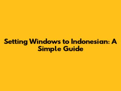 Step-by-Step Guide to Setting Windows to Indonesian