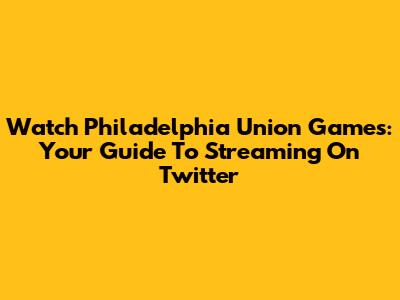Watch Philadelphia Union Games: Your Guide To Streaming On Twitter
