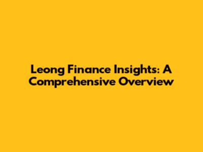 Leong Finance Insights: A Comprehensive Overview