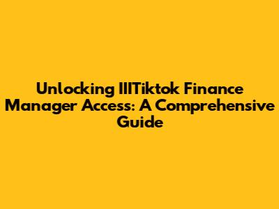 Unlocking IIITiktok Finance Manager Access: A Comprehensive Guide