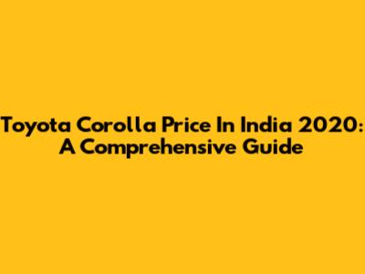 Toyota Corolla Price In India 2020: A Comprehensive Guide