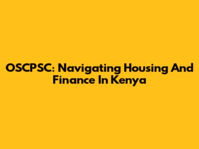 OSCPSC: Navigating Housing And Finance In Kenya