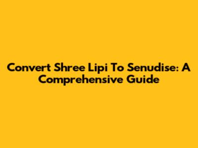 Convert Shree Lipi To Senudise: A Comprehensive Guide