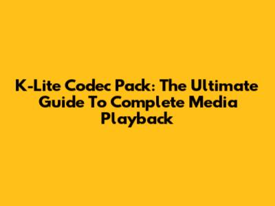 K-Lite Codec Pack: The Ultimate Guide To Complete Media Playback