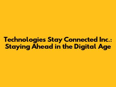 As technology continues to evolve at an unprecedented pace, staying connected is more critical than ever. Technologies Stay Connected Inc. plays a vital role in helping individuals and organizations navigate this dynamic environment. Let's look at some key strategies to stay ahead of the curve.