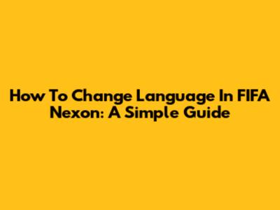 How To Change Language In FIFA Nexon: A Simple Guide