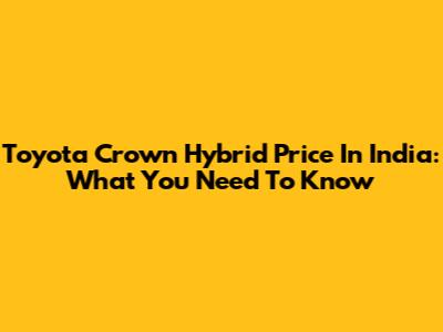 Toyota Crown Hybrid Price In India: What You Need To Know