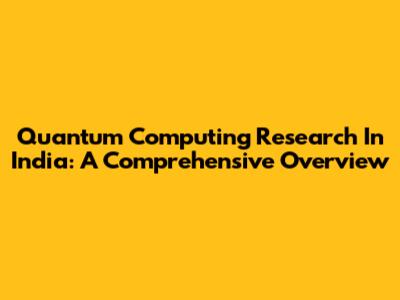 Quantum Computing Research In India: A Comprehensive Overview