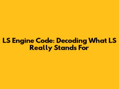 LS Engine Code: Decoding What LS Really Stands For