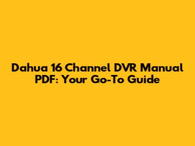 Dahua 16 Channel DVR Manual PDF: Your Go-To Guide