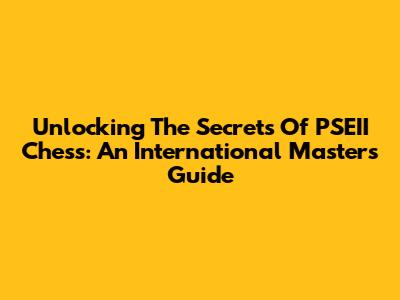 Unlocking The Secrets Of PSEII Chess: An International Master's Guide