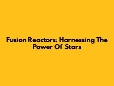 Fusion Reactors: Harnessing The Power Of Stars