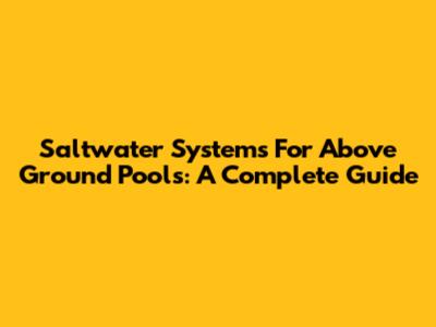 Saltwater Systems For Above Ground Pools: A Complete Guide