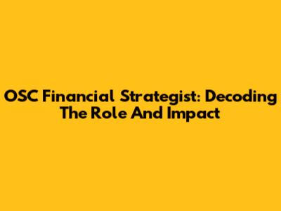 OSC Financial Strategist: Decoding The Role And Impact