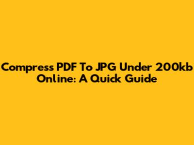 Compress PDF To JPG Under 200kb Online: A Quick Guide