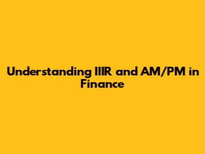 Hey finance enthusiasts! Let's dive into the fascinating world of financial jargon, specifically exploring the concepts of IIIR and AM/PM within the financial landscape. Now, these terms might seem a bit cryptic at first, but fear not, because we're going to break them down into easily digestible pieces. We'll explore what they stand for, how they're used, and why they matter in the grand scheme of things. Get ready to enhance your financial literacy and impress your friends with your newfound knowledge! Seriously, understanding these terms can give you a leg up in comprehending financial reports, market analysis, and even making smart investment decisions. So, buckle up, grab your favorite beverage, and let's unravel the mysteries of IIIR and AM/PM.