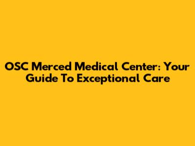 OSC Merced Medical Center: Your Guide To Exceptional Care