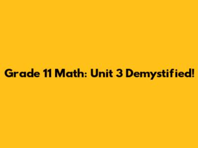 Grade 11 Math: Unit 3 Demystified!