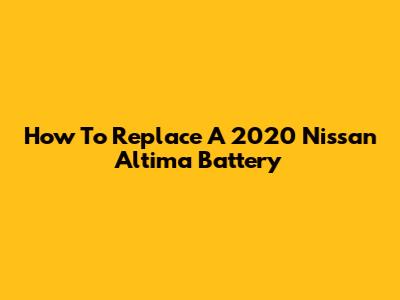 How To Replace A 2020 Nissan Altima Battery