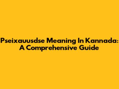 Pseixauusdse Meaning In Kannada: A Comprehensive Guide