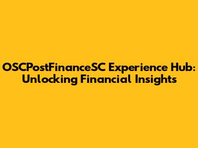 Ready to unlock your financial potential? Visit the OSCPostFinanceSC Experience Hub today and start exploring! With its comprehensive resources, interactive tools, and expert insights, the hub is your key to achieving financial success. Don't wait – start your journey towards a brighter financial future today!