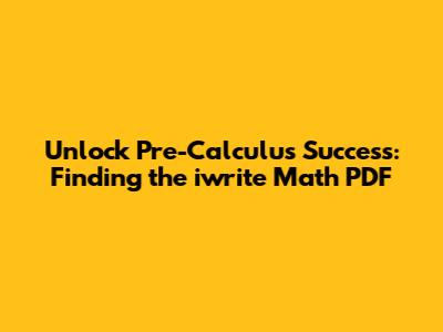 Hey there, math enthusiasts! Are you diving into the exciting world of pre-calculus? If you're anything like me, you know that having the right resources can make all the difference. That's why I'm here to talk about iwrite Math Pre Calculus 11 PDF, and how to get your hands on one. Pre-calculus can seem daunting, with concepts like limits, derivatives, and integrals looming on the horizon. But hey, don't sweat it! With the right approach and the correct materials, you can totally crush it. I'll guide you through finding the iwrite Math Pre Calculus 11 PDF, share some tips for making the most of it, and sprinkle in some words of encouragement to keep you motivated. So, grab your calculator, and let's jump right in! Believe me, the journey is rewarding, and with the right resources, you'll find the path to pre-calculus success much smoother.