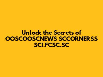 The Significance of OOSCOOSCNEWS SCCORNERSS SCI.FCSC.SC in Today's World