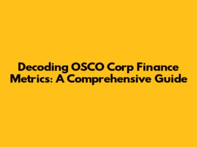 Decoding OSCO Corp Finance Metrics: A Comprehensive Guide