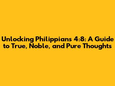 Philippians 4:8 is like a mental checklist for Christians. The Apostle Paul urges us to focus on what is true, what is noble, what is right, what is pure, what is lovely, what is admirable—if anything is excellent or praiseworthy—think about such things. Sounds simple, right? But unpacking each of these qualities reveals a depth of wisdom that can profoundly impact our thought lives.