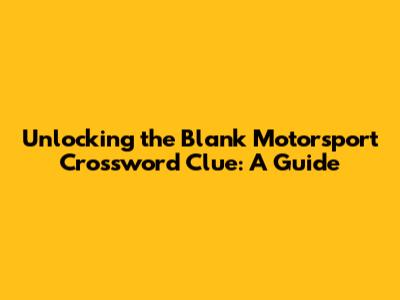 Hey crossword enthusiasts, are you stumped by a blank motorsport crossword clue? Don't worry, you're not alone! These clues can be tricky, often requiring specific knowledge of the racing world, its terminology, and the various teams, drivers, and events that make up the sport. This article serves as your ultimate guide to deciphering those pesky clues, providing you with strategies, common answers, and a deeper understanding of the motorsport landscape. We'll explore various types of clues, from driver names to car parts, and equip you with the knowledge to conquer any motorsport-related crossword puzzle. So, buckle up, and let's dive into the fascinating world of motorsport crosswords!