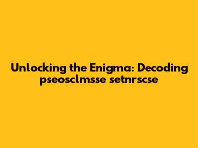 Without additional information, deciphering 'pseosclmsse setnrscse' is an exercise in speculation. Here are a few possible scenarios, ranging from the mundane to the more imaginative: