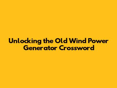 Decoding the Clues: A Guide to the Old Wind Power Generator Crossword