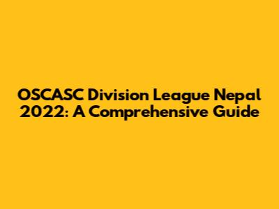 OSCASC Division League Nepal 2022: A Comprehensive Guide