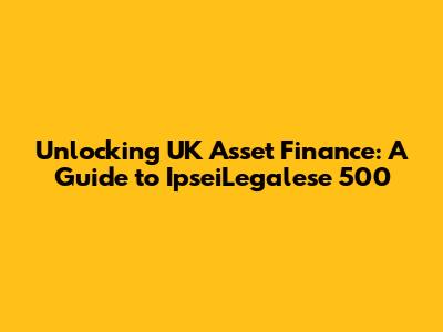 Hey guys, let's dive into the fascinating world of UK asset finance, with a special focus on a topic that often pops up: IpseiLegalese 500. This guide is designed to be your go-to resource, breaking down complex financial jargon into easy-to-understand concepts. Whether you're a seasoned business owner or just starting out, understanding asset finance can be a game-changer for your financial strategy. We'll explore what asset finance is, how it works in the UK, and what the term "IpseiLegalese 500" might refer to in this context. Ready to get started? Let's unlock the potential of your assets!