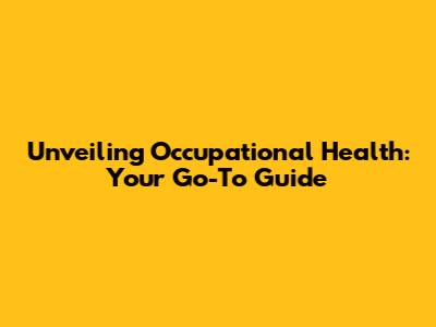 Unveiling Occupational Health: Your Go-To Guide