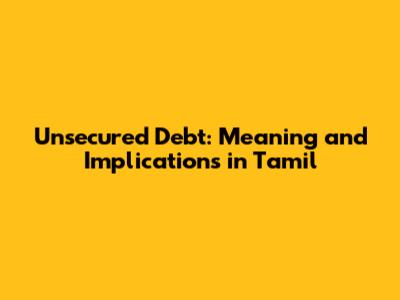 Unsecured Debt Explained in Tamil
