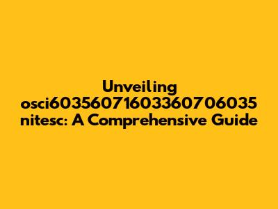 What is osci60356071603360706035 nitesc? Unpacking the Basics