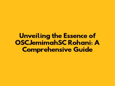 The Significance of OSCJemimahSC Rohani: Why Does It Matter?