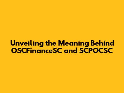 Hey everyone! Ever stumbled upon names like OSCFinanceSC and SCPOCSC and wondered what they actually mean? Well, you're in the right place! We're going to dive deep into these acronyms, breaking down their potential meanings and exploring their significance. This isn't just about defining letters; it's about understanding the context, the industry, and the possible intentions behind these names. So, grab your favorite beverage, sit back, and let's unravel the mysteries of OSCFinanceSC and SCPOCSC together!
