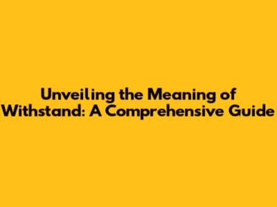 The Power of 'Withstand': Why It Matters